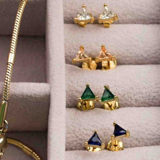 Moonstone Peach Triangle Stud Earrings